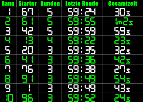 Anzeige der letzten Rundenzeit für den Teilnehmer.